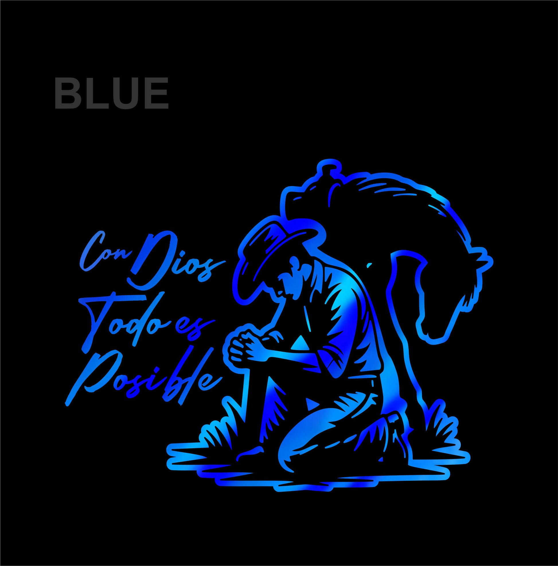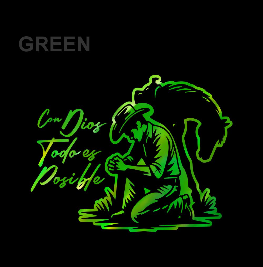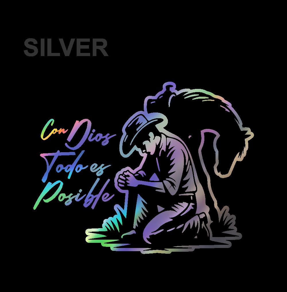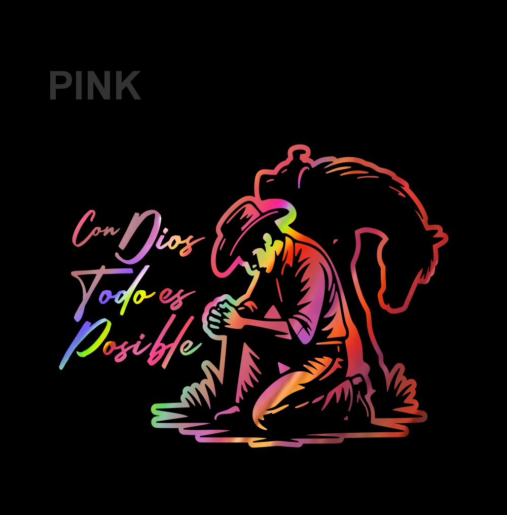 Con Dios Todo es Posible Holographic Sticker – Cowboy Prayer Vinyl Decal / Calcomanía Vaquero Religiosa Hombre en Vinil